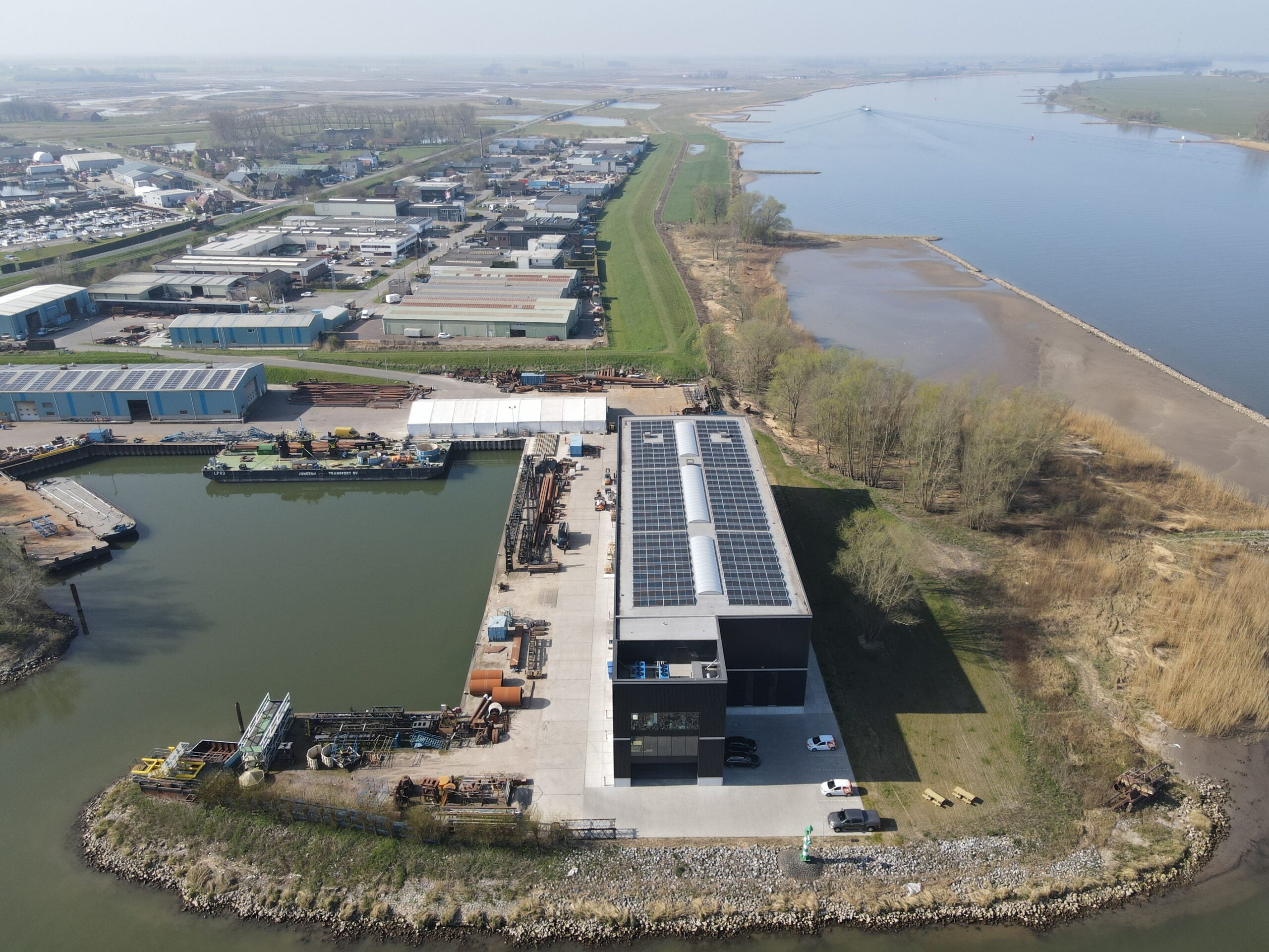 In februari 2022 kregen we een opdracht binnen van Hakkers BV uit Werkendam; een bedrijf die we al eens eerder mochten helpen bij de realisatie van een duurzaamheidsoplossing. Hakkers is actief in de waterbouw en heeft vrij recent een tweede loods op hun overslagterrein laten bijbouwen. Op het dak van de andere werkplaats voorzien onze zonnepanelen al sinds 2018 in een groene stroombehoefte, op basis van een door ons aangevraagde SDE-subsidie. Voor de nieuwbouwlocatie had Hakkers BV precies dezelfde milieubewuste oplossing in gedachten. En ook nu wisten ze ons weer graag te vinden.